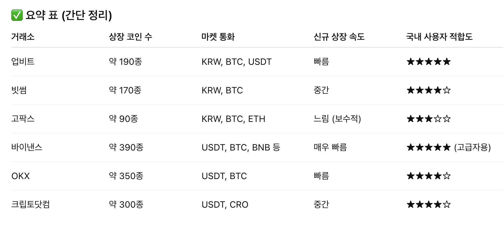 ✅ 요약: 가상화폐 거래소 선택 체크리스트