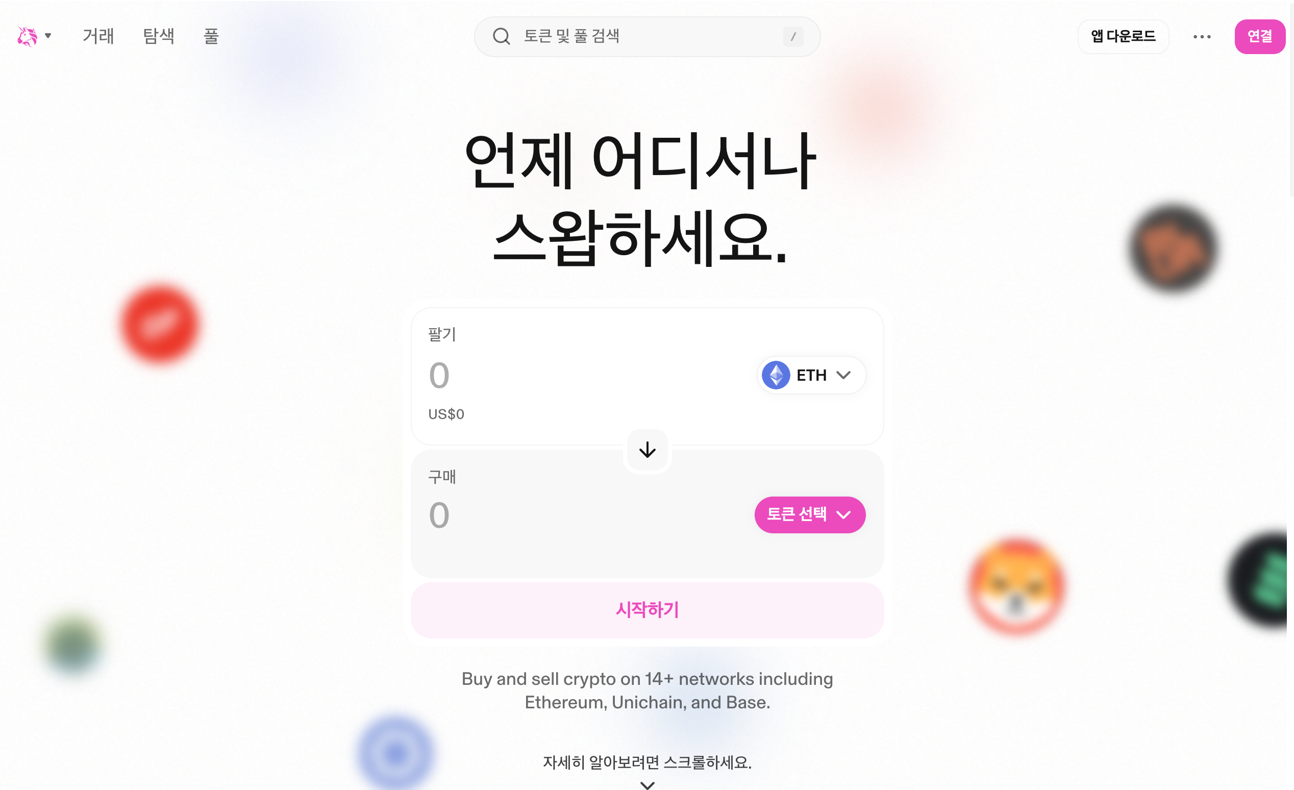 - 공식 사이트 https://app.uniswap.org에 접속합니다.