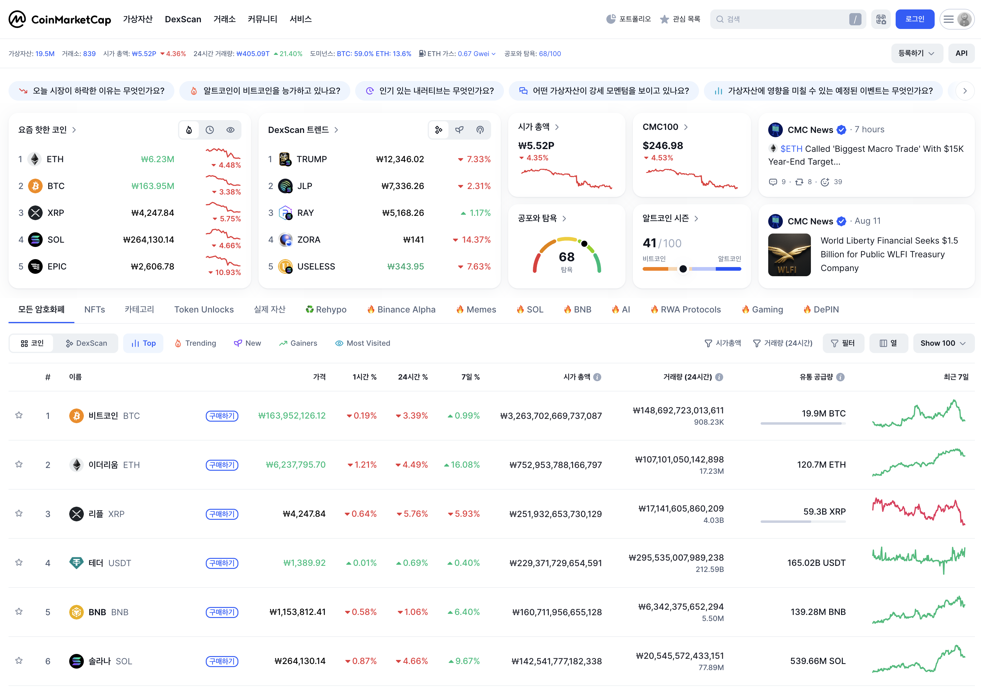 암호화폐 가격, 차트 및 시가총액 | 코인마켓캡