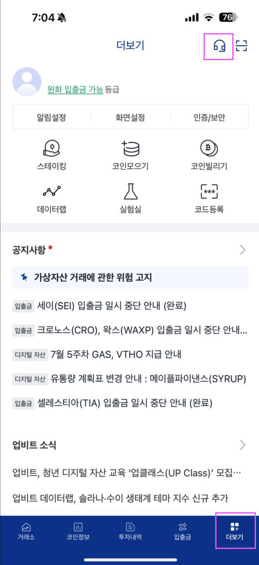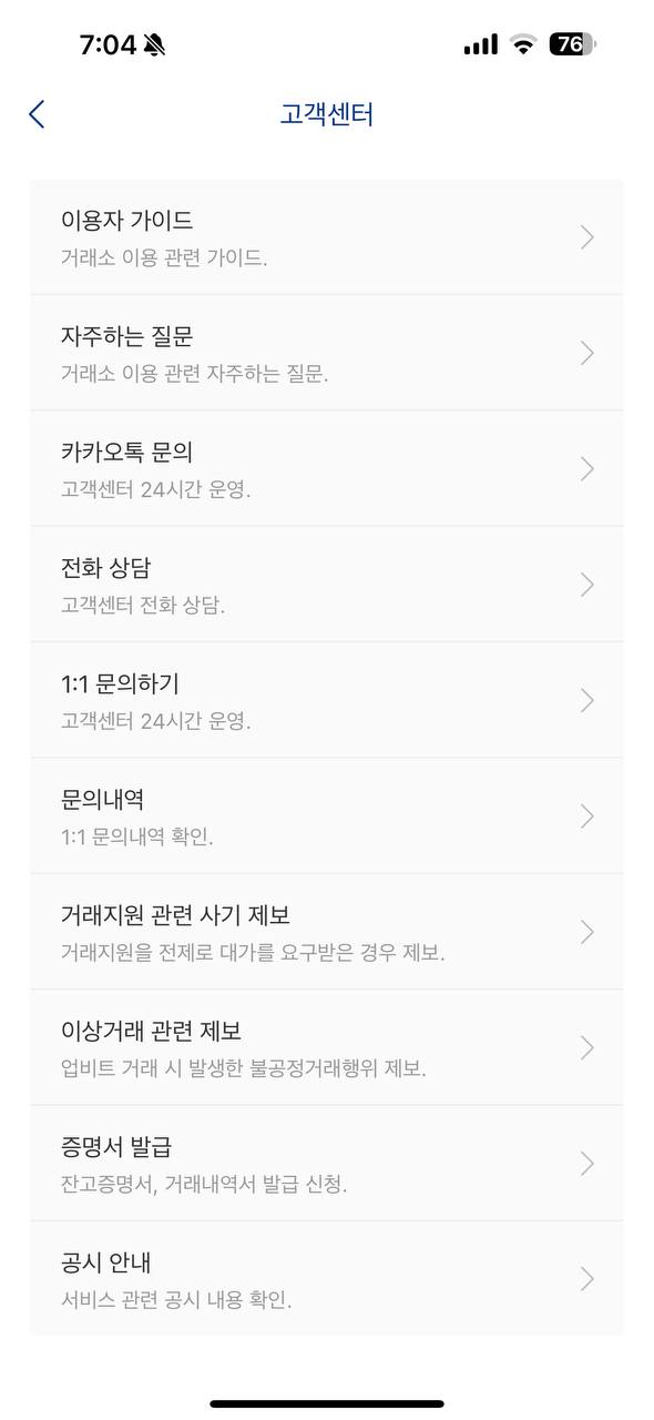 - 업비트: 앱 내 채팅상담, 답변 빠름